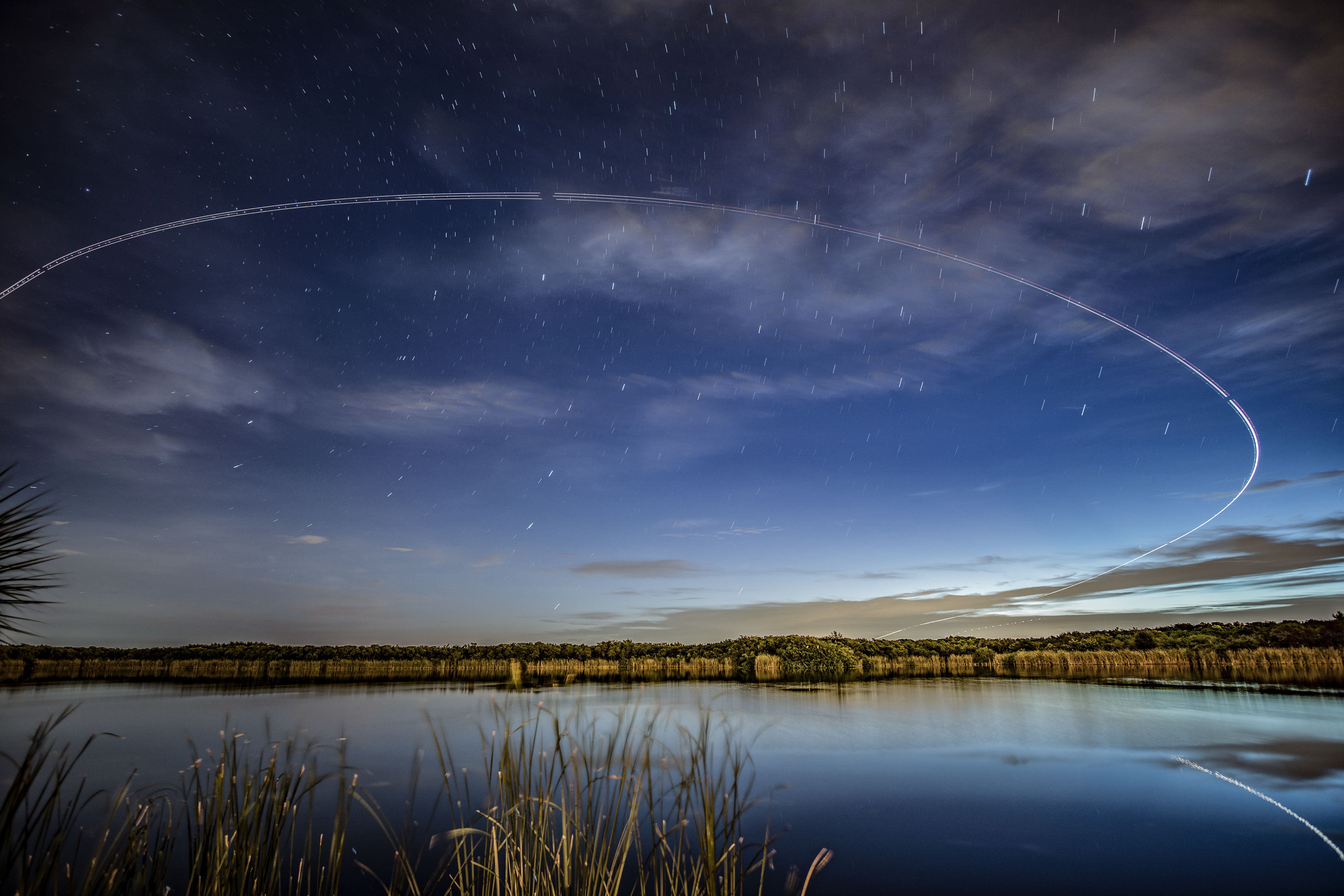 Pre-dawn flight & North Star (top left), 7 30 second exposures